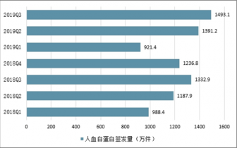 2018Q1-2019Q3人血白蛋白簽發(fā)量(萬(wàn)件)(標(biāo)準(zhǔn)規(guī)模:10g)