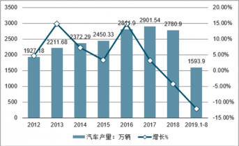 是近28年來(lái)首次出現(xiàn)負(fù)增長(zhǎng),2019年1-8月,中國(guó)汽車產(chǎn)量為1593.9萬(wàn)輛,較上年同期下降12.1%。