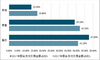 線下各場景商戶端聚合支付的交易金額占比情況最終取決于用戶端的使用情況。餐飲與零售場景具有日常、高頻、覆蓋全類型用戶、O2O屬性強4個特點,是聚合支付市場的核心競爭場景。因此,聚合支付各場景交易金額占比中,餐飲與零售場景成為絕對主力,占比超過八成。而2018年,由于支付寶和微信投入大量資源拓展線下餐飲商戶,使得餐飲場景占比在18年進一步增長。