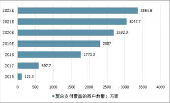 2016-2022年中國聚合支付覆蓋的商戶數量
