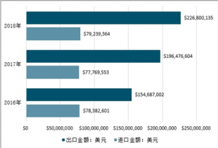 2016-2018年我國聚四氟乙烯(PTFE)進出口金額