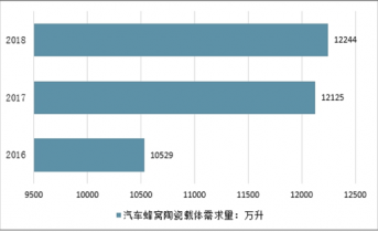 2015年國內汽車蜂窩陶瓷載體需求量約8291萬升,到2018年達到了12244萬升。