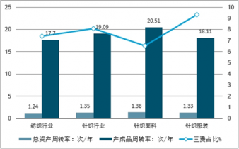 2018年中國(guó)針織行業(yè)總資產(chǎn)周轉(zhuǎn)率、產(chǎn)成品周轉(zhuǎn)率及三費(fèi)占比情況