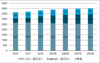 2016-2022年全球顯示面板出貨量及預(yù)測