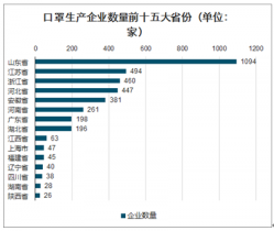 目前山東省是我國口罩生產第一大省,其口罩生產企業數量達1094家,穩居全國榜首,江蘇、浙江緊隨其后。由此可看出,華東地區口罩生產能力明顯領先于其他地區。