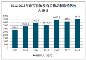 2012-2018年珠寶首飾及有關物品制造銷售收入統計