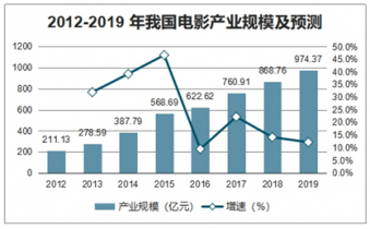 2012-2019 年我國(guó)電影產(chǎn)業(yè)規(guī)模及預(yù)測(cè)
