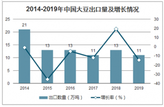 2014-2019年中國大豆出口量及增長情況