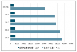2015-2019中國生豬和能繁母豬存欄量走勢