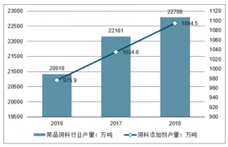 2016-2018年我國商品飼料及飼料添加劑產(chǎn)量走勢