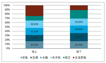 2018年中國(guó)家電行業(yè)線上線下市場(chǎng)零售額占比情況