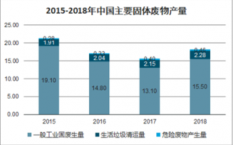 2015-2018年中國(guó)主要固體廢物產(chǎn)量