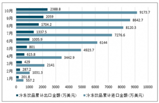 2019年1-10月中國(guó)冷凍飲品進(jìn)出口金額情況