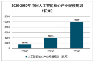 2020-2030年中國人工智能核心產業規模規劃(億元)
