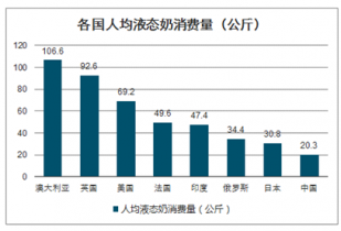 各國人均液態(tài)奶消費量(公斤)