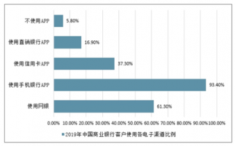 2019年中國商業(yè)銀行客戶使用各電子渠道比例