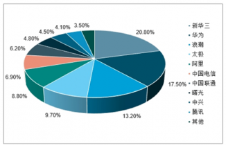 當(dāng)前我國數(shù)字政府行業(yè),以新華三、浪潮和太極為代表的軟件服務(wù)企業(yè),和以華為、阿里、騰訊和運營商為代表的硬件設(shè)備企業(yè)占據(jù)著較高的市場份額,占比如下: