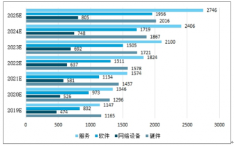 其中,軟件和服務(wù)是未來幾年主要增長的細分領(lǐng)域,而網(wǎng)絡(luò)設(shè)備和硬件隨著基礎(chǔ)設(shè)備的完善,增速將不斷減緩。