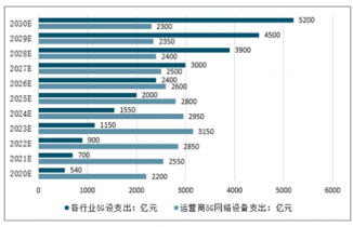 預計2020年,電信運營商在5G網(wǎng)絡設備上的投資超過2200億元,各行業(yè)在5G設備各方面的支出超過540億元。隨著網(wǎng)絡部署持續(xù)完善,運營商網(wǎng)絡設備支出預計自2024年起將開始回落。同時隨著5G向垂直行業(yè)應用的滲透融合,各行業(yè)在5G設備上的支出將穩(wěn)步增長,成為帶動相關(guān)設備制造企業(yè)收入增長的主要力量。2030年,預計各行業(yè)各領(lǐng)域在5G設備上的支出超過5200億元,在設備制造企業(yè)總收入中的占比接近69%。