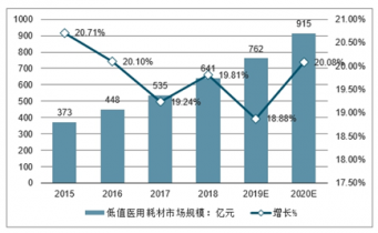 2015-2020年低值醫(yī)用耗材市場規(guī)模及增長走勢