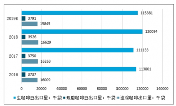 2016-2019年全球咖啡細分產品出口量情況