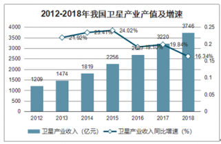2012-2018年我國衛(wèi)星產(chǎn)業(yè)產(chǎn)值及增速