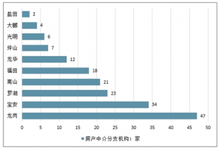 2018年深圳各區(qū)域房產(chǎn)中介分支機構(gòu)增長情況(單位:家)