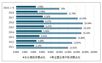 2011-2019年中國(guó)商業(yè)地產(chǎn)開(kāi)發(fā)投資額占比情況