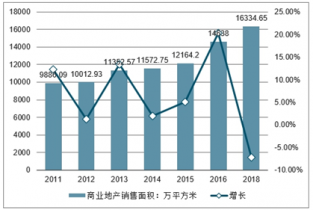 2010-2018年我國(guó)商業(yè)地產(chǎn)銷(xiāo)售面積總體呈上升趨勢(shì),而2018年增速下滑到負(fù)增長(zhǎng)水平,2018年全國(guó)商業(yè)地產(chǎn)銷(xiāo)售面積為16334.65萬(wàn)平方米,同比下降7.16%。