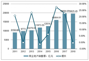 2018年全國(guó)商業(yè)地產(chǎn)銷(xiāo)售額為19625.45億元,同比下降0.35%。