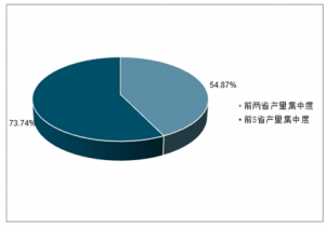 2018年中國(guó)糖果前5省產(chǎn)量集中度