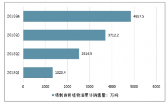 2018年中國(guó)精制食用植物油累計(jì)銷售量情況