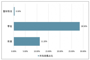 2018年快遞、零擔、整車物流的市場規(guī)模占比