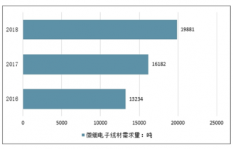 2016年國內(nèi)超微細(xì)電子線材行業(yè)需求量約10310噸,到2018年增長到了19881噸。
