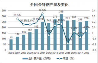金針菇是我國食用菌工廠化生產中技術最完善的品種之一,近些年來金針菇行業呈現爆發式增長。2006-2014年間,我國金針菇產量快速上升,年復合增速達到16%。2015年我國金針菇產量大幅下降18%,隨后2016-2018年間金針菇產量在250萬噸左右水平震蕩。