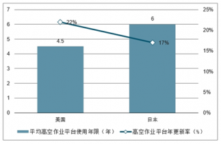 歐美日平均高空作業平臺使用年限及高空作業平臺年更新率