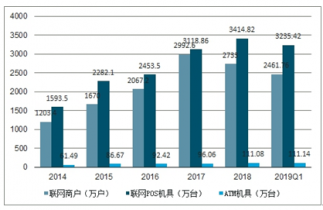 2019年一季度,銀行卡跨行支付系統(tǒng)聯(lián)網(wǎng)特約商戶2461.76萬(wàn)戶,聯(lián)網(wǎng)POS機(jī)具3235.42萬(wàn)臺(tái),較上季度末分別減少271.23萬(wàn)戶和179.40萬(wàn)臺(tái),ATM機(jī)具111.14萬(wàn)臺(tái),較上季度末增加0.06萬(wàn)臺(tái)。