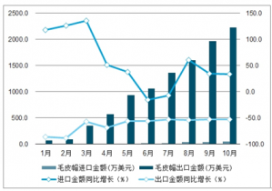 2019年1-10月中國(guó)毛皮帽累計(jì)進(jìn)出口金額及增速趨勢(shì)圖