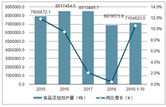 2019年1-10月中國(guó)食品添加劑產(chǎn)量及增速統(tǒng)計(jì)表