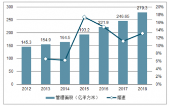 2012-2018年管理物業(yè)面積及增速趨勢