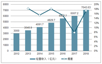 2012-2018年物業(yè)管理行業(yè)營業(yè)收入及增速趨勢