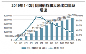 2019年1-12月我國(guó)稻谷和大米出口量及增速