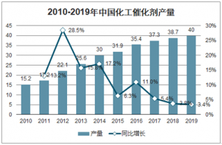 2010-2019年中國(guó)化工催化劑產(chǎn)量