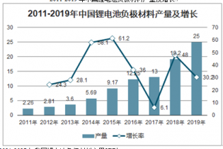 2011-2019年中國鋰電池負極材料產(chǎn)量及增長