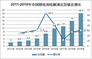 圖表:2015-2019年中國鋰電池電解液銷售量趨勢分析