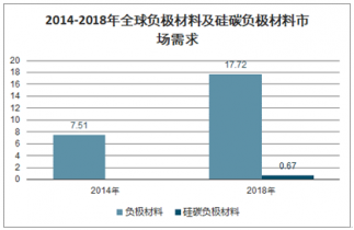 伴隨著全球硅碳負(fù)極材料的產(chǎn)業(yè)化,全球硅碳負(fù)極材料市場需求逐漸增長。全球負(fù)極材料市場需求從2014年的7.51萬噸提高至2018年的17.72萬噸,年復(fù)合增長率達(dá)到23.94%。