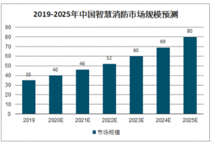 根據智慧城市的建設推進步伐,預測未來五年,中國智慧消防投資增速有望保持在15%左右,預測到2025年智慧消防市場規模將達到80億元左右。