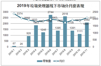 2019年1-11月,在線下市場中垃圾處理器零售量達到15468臺。其中2019年6月份銷售量最高,垃圾處理器零售量達到2744臺,均價為1963元。