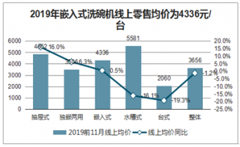 2019年嵌入式洗碗機(jī)線上零售均價(jià)為4336元/臺