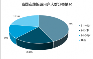 而從用戶人群來看,80、90后已成為我國在線旅游市場的消費主力人群。根據數據顯示,在我國在線旅游用戶人群中,31-40歲的用戶比例高達43%,24以下及24-30歲的用戶比例分別達到18.8%和16%,占據較大的份額。轉換為年齡層級來看,80后和90后的比例占據在線旅游的77.8%。